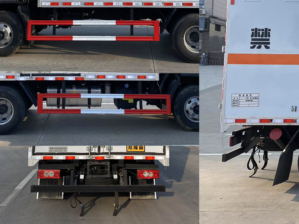 | 其它: | 1、該車(chē)適用于運(yùn)輸危險(xiǎn)品。廂體頂部封閉不可開(kāi)啟。運(yùn)輸具有獨(dú)立容器(瓶)包裝的物品,運(yùn)送危險(xiǎn)物品類(lèi)項(xiàng)號(hào):6.1,6.2。2、側(cè),后防護(hù)材料均為Q235,螺栓連接;后防護(hù)截面尺寸100×50mm,下邊緣離地高410mm。廂體側(cè)面選裝開(kāi)門(mén)型式及位置,選裝不帶側(cè)開(kāi)門(mén),選裝瓦楞板結(jié)構(gòu);選裝百葉窗。3、隨底盤(pán)選裝排半駕駛室。僅選用排氣管前置、限速裝置(限速80km/h)、前輪盤(pán)式制動(dòng)及子午線(xiàn)輪胎的底盤(pán);轉(zhuǎn)向輪裝備輪胎爆胎應(yīng)急防護(hù)裝置。安裝帶衛(wèi)星定位功能的行駛記錄儀。ABS系統(tǒng)型號(hào):ABS-VI.E;生產(chǎn)企業(yè):廣州瑞立科密汽車(chē)電子股份有限公司;ABS系統(tǒng)型號(hào):ABS-E;生產(chǎn)企業(yè):威伯科汽車(chē)控制系統(tǒng)(中國(guó))有限公司;ABS系統(tǒng)型號(hào):ABS8.8 ECU 24V,生產(chǎn)企業(yè):東科克諾爾商用車(chē)制動(dòng)系統(tǒng)(十堰)有限公司;發(fā)動(dòng)機(jī)/油耗值(L/100km)對(duì)應(yīng)關(guān)系為:CY4SK261/16.09,D30TCIF1/16.19,F2.8NS6B156/15.39,F3.8NS6B156/14.90。可選裝ETC車(chē)載裝置。 | ||