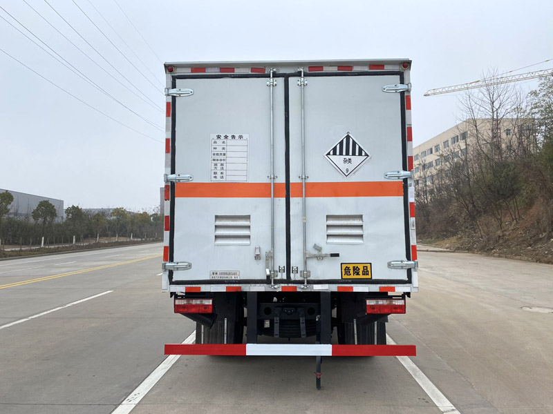 | 其它: | 1、該車為危險品運輸車,運輸具有獨立容器(瓶)包裝的物品,運送危險物品類項號:9。廂體頂部封閉,不可開啟。2、側、后防護材料均為Q235,側防護螺栓連接,后防護焊接,截面尺寸(mm)100×50,下邊緣離地高450mm。3、僅選用排氣管前置、限速裝置(限速80km/h)、前輪盤式制動及子午線輪胎的底盤,轉向輪安裝輪胎爆胎應急防護裝置。安裝帶有衛(wèi)星定位功能的行駛記錄儀。ABS系統(tǒng)控制器型號/生產廠家: ABS/ASR-24V-4S/4M/襄陽東風隆誠機械有限責任公司。發(fā)動機/油耗值(L/100km)對應關系為: ZD30D16-6N/17.2,YCY24140-60/16.5, NV30-C6G/17.3, CY4SK261/17.4, YCY30165-60/17.5, CY4BK361/17.9。選裝ETC。隨底盤選裝駕駛室。廂體側面選裝開門型式及位置,選裝不帶側開門,選裝廂體樣式,廂體側面板選裝開百葉窗。僅采用軸距3308mm。 |