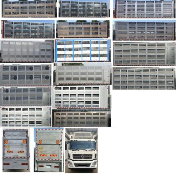 | 配置 | 該車專用裝置為箱體,主要用于畜禽運(yùn)輸。車廂底板**頂部高度2560mm。尾板收起狀態(tài)水平長度為250mm,尾板質(zhì)量為450kg。側(cè)防護(hù)材料為鋁合金,螺栓連接,后防護(hù)材料為Q235,螺栓連接,斷面尺寸(mm):120×100,下緣離地高500mm。安裝有具有衛(wèi)星定位功能的行駛記錄儀。隨底盤選裝駕駛室,選裝制冷機(jī),選裝箱體前部不帶設(shè)備艙樣式,選裝多層及多隔艙樣式,選裝不同外觀。ABS系統(tǒng)**器型號/生產(chǎn)企業(yè):ABS 8/東科克諾爾商用車制動系統(tǒng)(十堰)有限公司,ABS-E 4S/4M/威伯科汽車**系統(tǒng)(**)有限公司。發(fā)動機(jī)/油耗值(L/100km)對應(yīng)關(guān)系為:DDi11E465-60/37.2,DDi11E385-60/37.2,DDi11E430-60/37.2。選裝ETC。 | ||