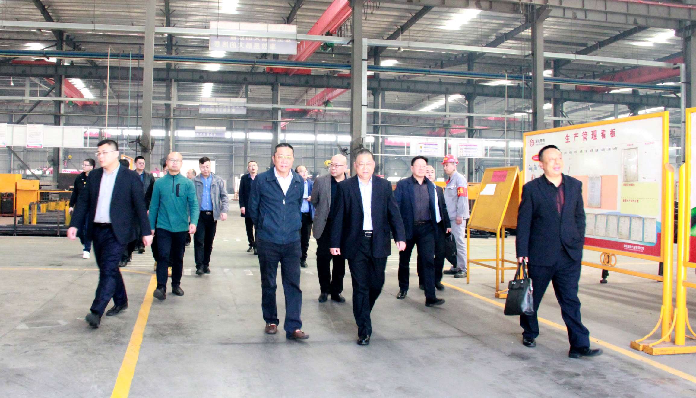3月9日下午,中國重汽集團總經(jīng)理、黨委副書記蔡東、產(chǎn)品策劃總監(jiān)、專用車部部長王德春、副部長隋磊等一行11人蒞臨楚勝汽車集團參觀考察,公司總裁王小康、副董事長傅冠生等班子成員陪同參觀、交流座談。