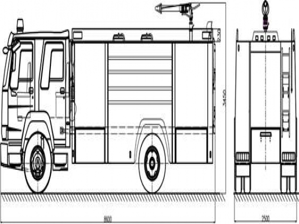 8噸消防車采用中國重汽濟南卡車有限公司ZZ5207TXFV471GF5型二類汽車底盤,原裝雙排駕駛室,乘員2+4人,該車駕乘舒適輕便。上裝采用外露式水罐,整車載液量為水7600kg。器材箱采用高質量鋁合金卷簾門。底盤取力,發(fā)動機型號為MC07.34-60,最大功率257kW,通過萬向聯(lián)軸器驅動安裝在汽車尾部泵房里的上海雄真CB20.10/30.60型中低壓消防泵,可在1.0MPa下穩(wěn)定輸出60L/s的流量;2.0MPa下穩(wěn)定輸出30L/s的流量;車頂安裝成都威斯特消防器材有限責任公司生產的PS8/60W型消防炮(水罐消防車),流量60L/s,對應壓力0.8MPa,最大承壓1.3MPa,射程75m,可360°旋轉。同時該車具有比功率大、綜合性能強、操控集中簡便等特點。