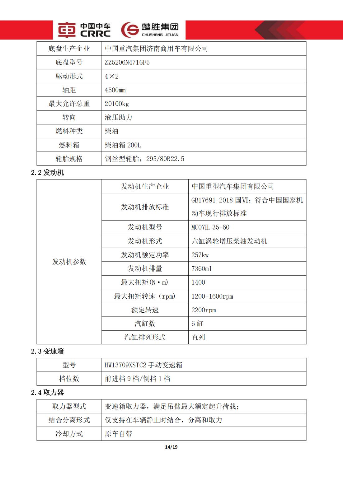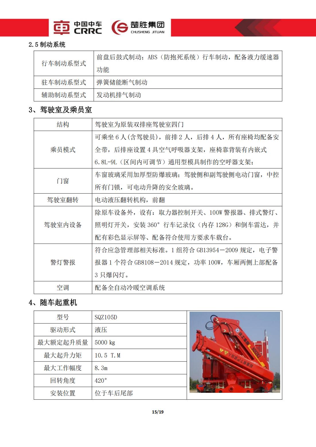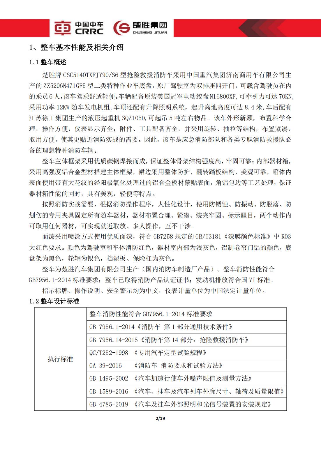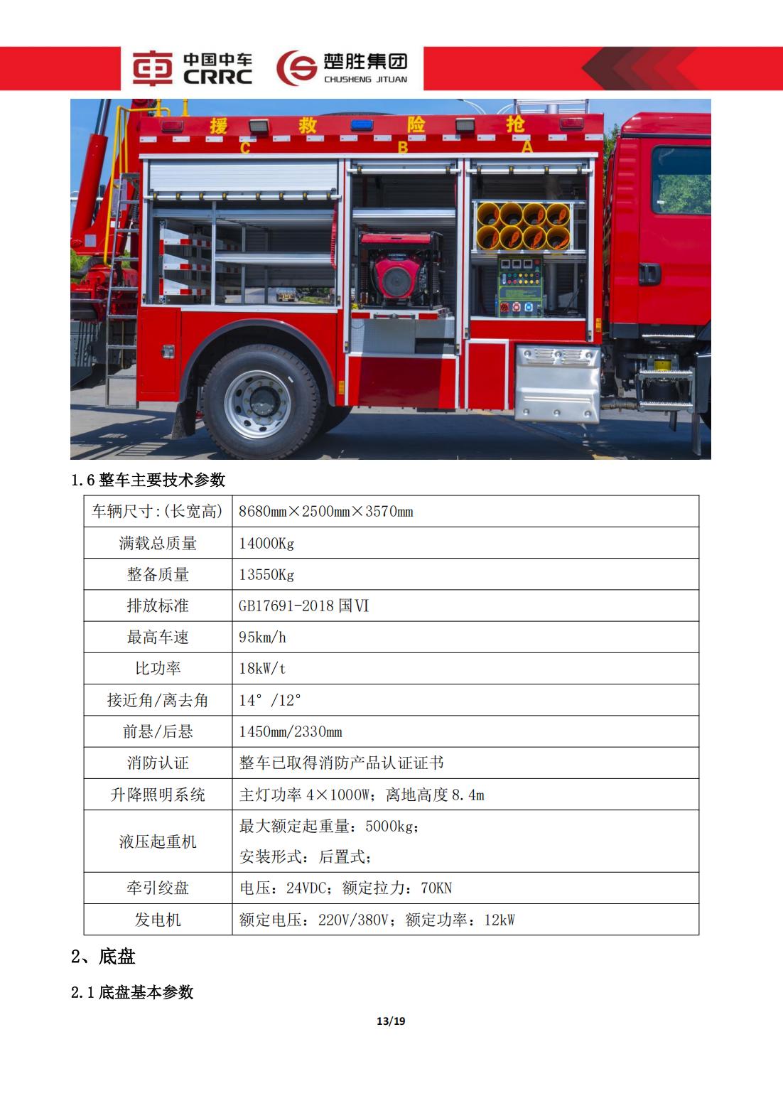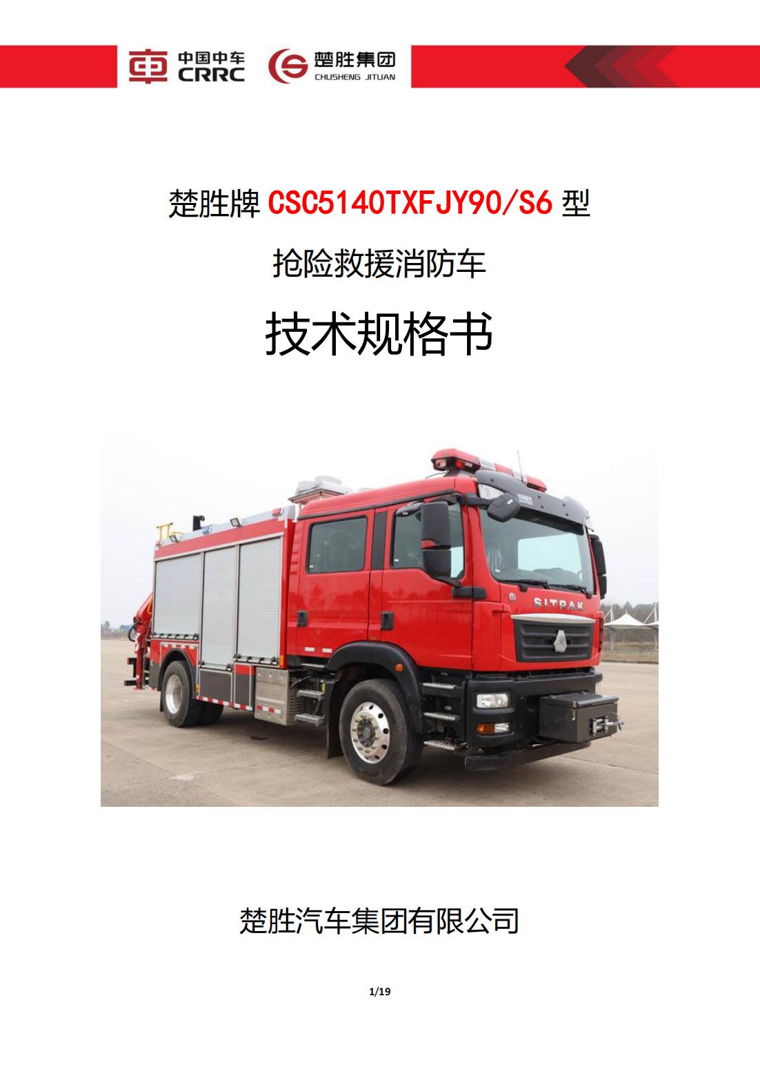 楚勝牌 CSC5140TXFJY90/S6 型 搶險救援消防車